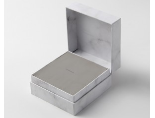 首飾盒子使用雙銅紙制成,雙銅紙因其本身材質的特點強度好、有韌性,紙張挺度和彈性較好,通常作為較高端的產品包裝,這款盒子采用精美專色印刷工藝制成,尺寸可按需求定制。一個包裝盒上必不能少的一個元素就是logo了,這個盒子的logo采用頂級燙金、凹凸工藝制成,看起來很有質感;這個盒子特殊的紋理效果給人環保又不失單調的感覺,無需過多的雕琢鑲嵌就充滿貴族的氣質。
