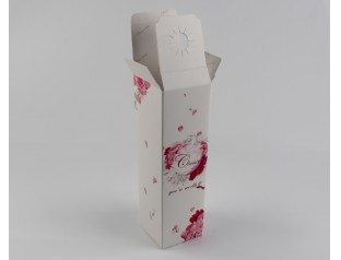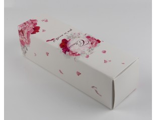 飄散著的粉色花瓣,制造了一種浪漫、溫馨的感覺(jué),情侶間共享燭光晚餐不防也帶上這樣一個(gè)酒盒包裝,渲染一下氛圍。駿業(yè)包裝設(shè)計(jì)印刷的紅酒盒一如既往的平整干凈,厚實(shí)、美觀,精湛工藝可見(jiàn)一斑。酒盒開(kāi)口處那固定酒瓶的圓孔設(shè)計(jì),別出心裁,卻為攜帶的安全性帶來(lái)一份保險(xiǎn)。