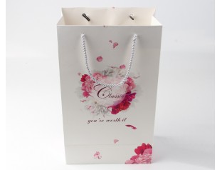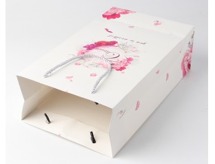 作為一個有靈敏嗅覺的包裝廠家,要善于抓住熱點推銷自己的產品,這不,《三生三世十里桃花》漫天飛舞的桃花令人神往,而作為一個香水禮品袋,有著漫天飛舞的花點綴,是不是光看著就好像能聞到香味了呢?而這款香水禮品袋采用的是雙銅紙作為原料,雙面銅版紙是銅版紙的一種,就是雙面涂布,兩面都具有很好的平滑度,印刷出來的產品都很精美。CMYK四色彩印使紙袋上的圖案更加的清晰、艷麗,不脫色、不褪色。銀色的尼龍繩拎手使紙袋看起來更加高級,拎手處打孔打結處理,更加牢固。