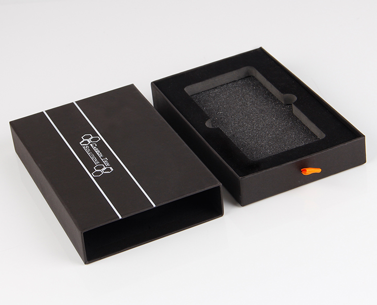 4、電子類禮品盒:如MP3、U盤或手機盒等。材料多采用157~210g銅版紙或啞粉紙,裱800~1200g雙灰板,也可用布紋紙或其它彩色特種工藝紙。 印刷:多以4C+0印刷,可印專色(專金或專銀)。 后道工藝:有過光膠、啞膠、局部UV、壓紋、燙鉑(有金色、銀色、寶石藍色等多種色彩的金屬質感膜供選擇)或過防偽膜(使他人難以仿造),內裱紙為157g銅版紙,不印刷。 內盒(內卡):常用發泡膠內襯絲綢絨布、海綿或植絨吸塑等材料。盒開口處嵌入兩片磁鐵,后道工藝多以手工精心制做。此種造型為書盒式,選用材料按實際產品需要和檔次來選擇,確保安全防振、美觀、經濟、時尚。