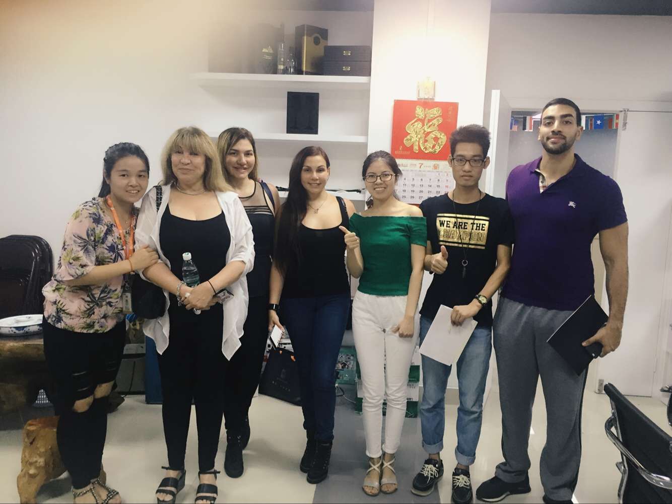 下面是阿聯(lián)酉客戶首次來駿業(yè)包裝考察后,當場簽訂商標吊牌制作的銷售合同后大合照。
