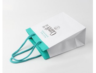此款禮品包裝紙袋采用250g單銅紙,雙色印刷,過(guò)啞膠,自扣尼龍圓繩手提紙袋設(shè)計(jì)走小清新的風(fēng)格,整體采用白色作為主打色,搭配天藍(lán)色紙袋設(shè)計(jì)的提手處選用了天藍(lán)色的尼龍圓繩,小清新的白色和藍(lán)色搭配是藍(lán)天白云這樣一對(duì)經(jīng)典的組合,給人舒心的感覺(jué)