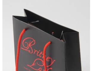 駿業紙袋印刷廠定制的手提紙袋,采用250g銅版紙,雙色印刷過啞膠,提手處用紅色尼龍圓繩。紙袋印刷廠設計的此款手提紙袋選用了經典的黑色和紅色搭配,紙袋整體用黑色作為主色,商標紅色印刷。手提紙袋紅與黑的搭配自然地散發出氣場.紅色的艷麗熱烈,配上黑色的深沉穩重,相互中和,高檔大氣