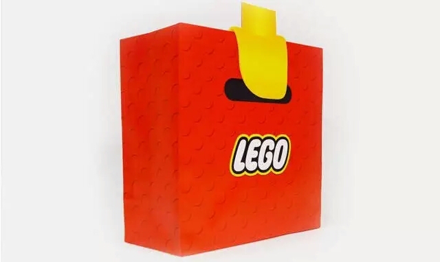 樂高積玩具是一種塑膠積木,風靡全球。有天,紐約視覺藝術學院的兩位學生Junho Lee和Hyun Chul Choi的就把樂高積木元素放到到手提的購物袋上,創作出只要提起紙袋手就變成跟樂高人偶一樣的形狀,這樣充滿玩心的設計一出當然又被一片「想買」的聲音給淹了。