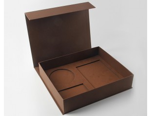 這個襯衫包裝盒定制使用1100克灰板紙為內紙,裱紙為157克雙銅紙,覆啞膜;因為是用來裝襯衫的包裝盒,所以尺寸比較大,而又因為襯衫是端莊、大氣的商品,所以包裝盒的設計也不需要太過浮夸,簡簡單單就好;雙銅紙天然的肌理給人環保又不失單調的感覺,無需過多的雕琢鑲嵌就充滿貴族的氣質,棕色的色調又為盒子增添一份高貴感。